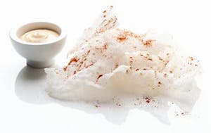 Rispapir: Varm olien op til 185°. Dyp rispapiret kort i den varme olie og lad det dryppe af på fedtsugende papir. Drys med salt og piment espalette.