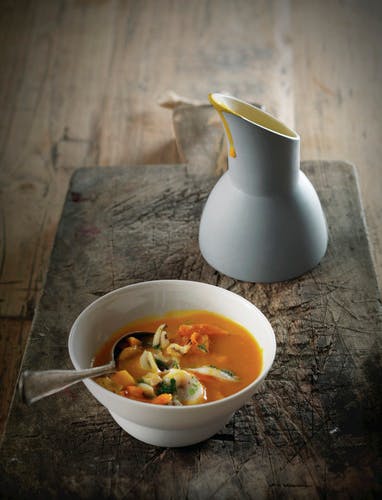 TIP: Hvis du bruger hokaidogræskar, behøver du ikke at skrælle det - skallen bliver blød af kogning og er let at blende med, og så giver den faktisk bare din græskarsuppe en endnu smukkere dyb orange farve.