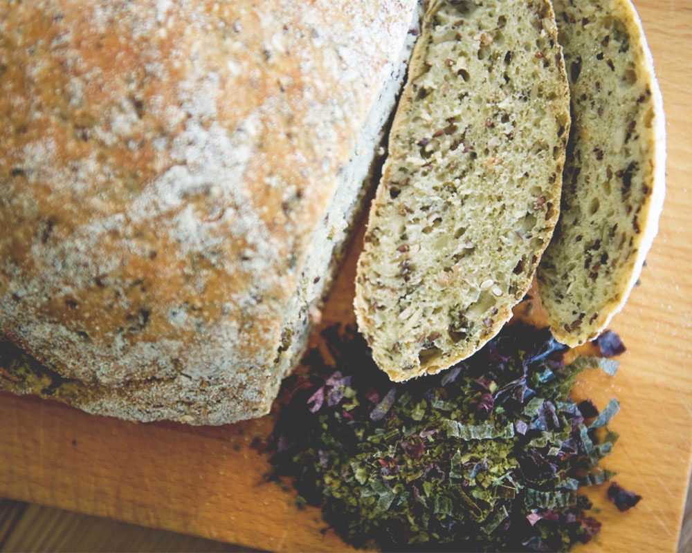 En dej fremstilles af ½ liter koldt vand, 60 g hørfrø, 30 g solsikkefrø, 30 g græskarkerner, 60 g grove havregryn, tangblandingen, ½ pakke gær, ½ spsk salt og 500 g mel.