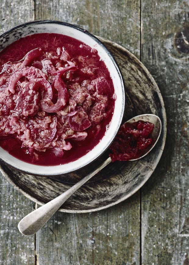 Rabarber er en sommerfavorit, som bliver brugt til at give sød frugt, is, kage og bær et syrligt modspil, og derfor glemmer man ofte, at de skønne, røde stængler faktisk også fungerer rigtig godt sammen med kød, fjerkræ og fisk. Den her rabarberchutney er en god måde at få rabarber ind i hverdagsretter og nyde dem til andet end det søde. Brug en rabarberchutney som tilbehør til stegt fisk som makrel eller hornfisk, til lammekød, til svinekød, til fjerkræ og til koldt kød og charcuterie. Vild med rabarberchutney? Se mere om forårsbebuderen rabarber her! Rabarberchutney med fennikelfrø og korianderfrø 1 sylteglas/ca. 1 liter Det skal du bruge til rabarberchutney: