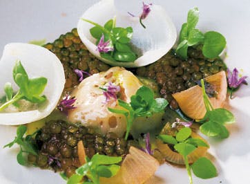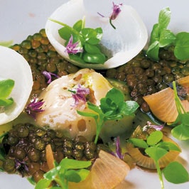 Varm løgkompotten op og læg den på midten af en dyb tallerken.