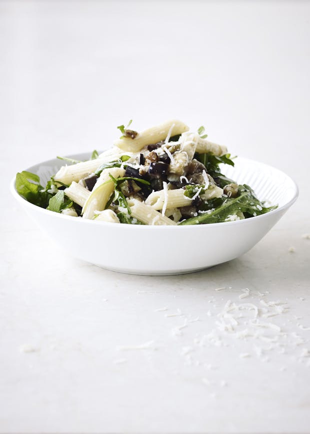 Italienerne kan noget med at lave god hverdagsmad, og det er den her opskrift et glimrende eksempel på. Det er en nem pastaret med aubergine, hvidløg, ansjosfileter, parmesan og rucola, hvilket er meget få ingredienser, men resultatet er en ret med stor smag. Smag selv... Se også: 7 bud på en nem pastaret til aftensmaden