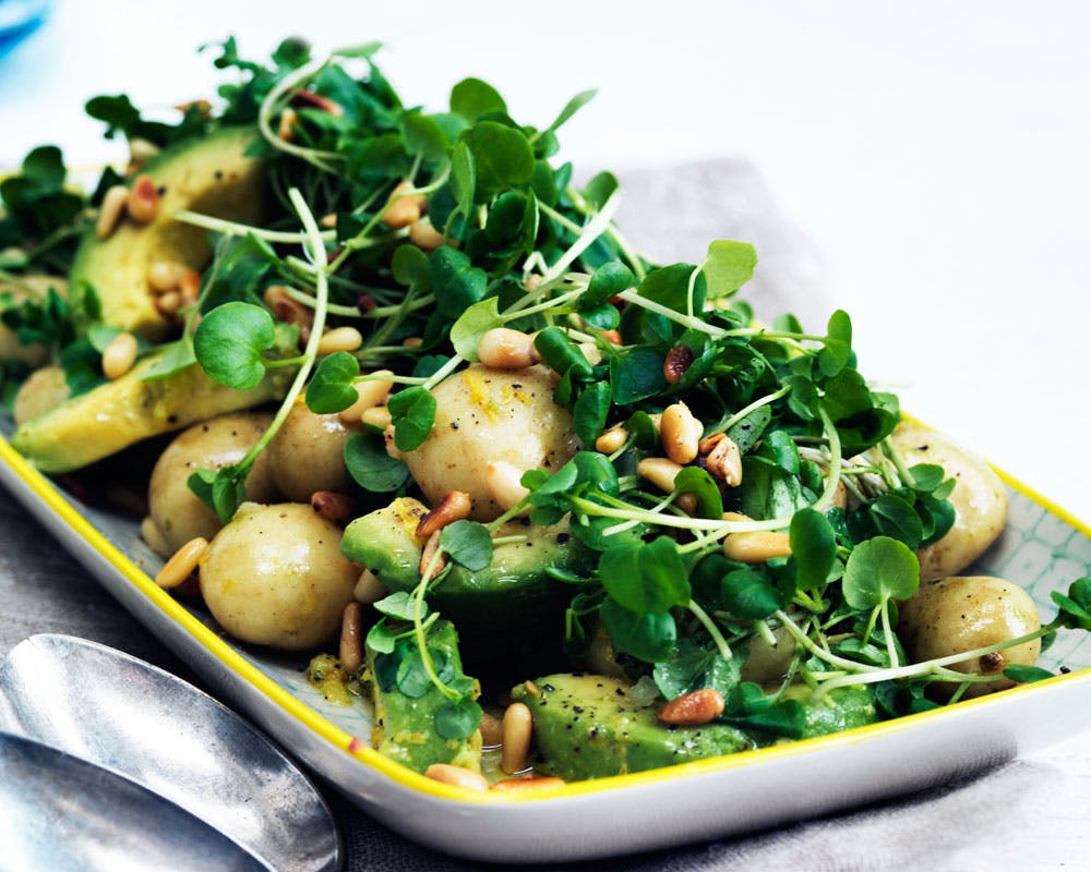 De sommerlige små herligheder er så småt begyndt at titte frem på hylderne i supermarkedet. Og der er intet som kogte nye danske kartofler som tilbehør til grillmaden, fisk eller fjerkræ. Her får du opskriften på en lækker sommerlig salat af nye kartofler med avocado og en frisk citrondressing.