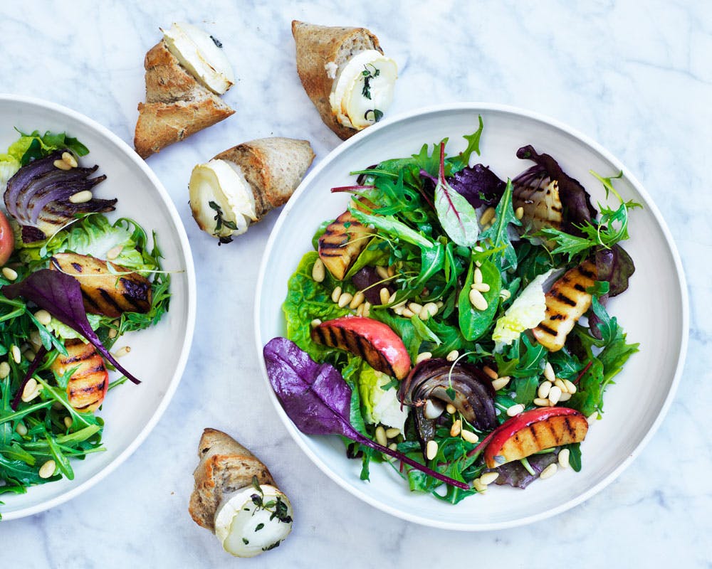 OPSKRIFT | Salat med grillet æble og gedeostebrød