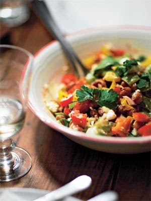 - Bland grønsager med bønnerne og drys smuldret feta og grofthakket persille over blandingen og server.