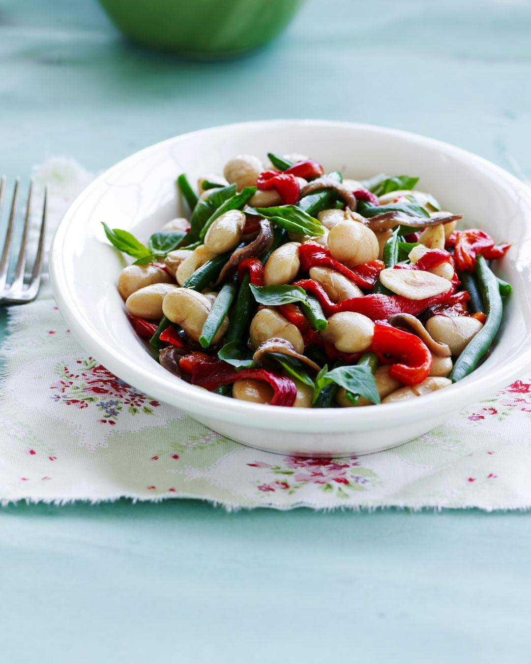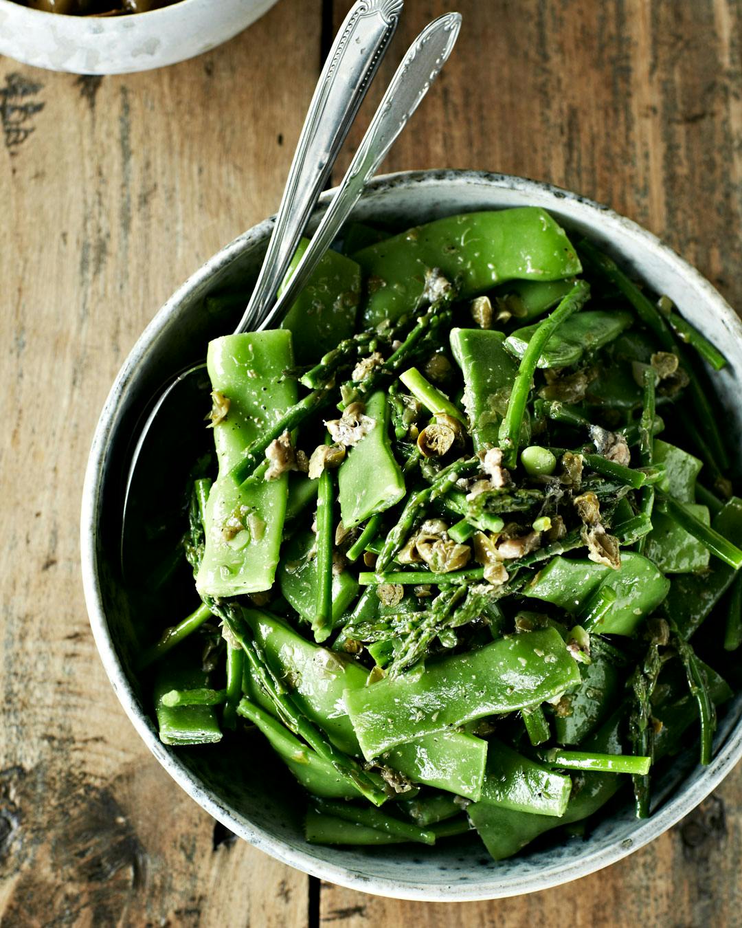 En smørbønnesalat som denne har godt af en kraftig og syrlig dressing, og friske, sprøde grøntsager giver modspil til bønnernes bløde, let melede konsistens. Find opskriften her! (link fjernet)
