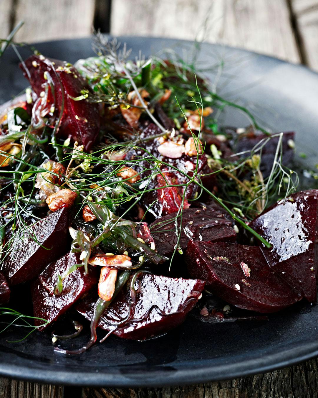 Rødbeder har en god, sødlig smag, som godt kan tåle at komme i fokus. Denne salat er som tilbehør til fisk og kød. Find opskriften her! (link fjernet)