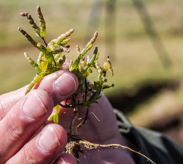 Den kan bruges frisk i mange forskellige retter, hvor den giver et knasende sprødt og mildt salt pift. Den minder lidt om asparges og ud over natrium er den rig på jod og vitaminer. Planten har leddelte sukkulente stængler og minder lidt om en minikaktus.