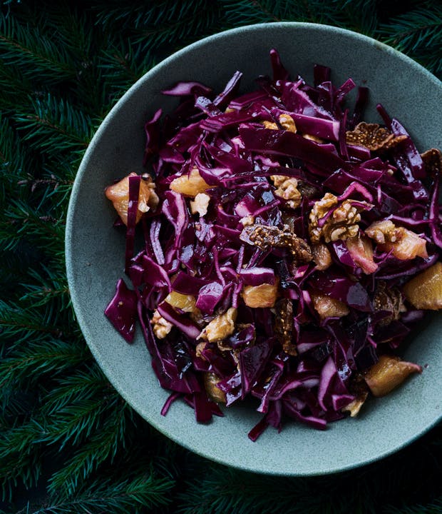 Det skal du bruge for at lave rødkålssalat med appelsin og valnødder