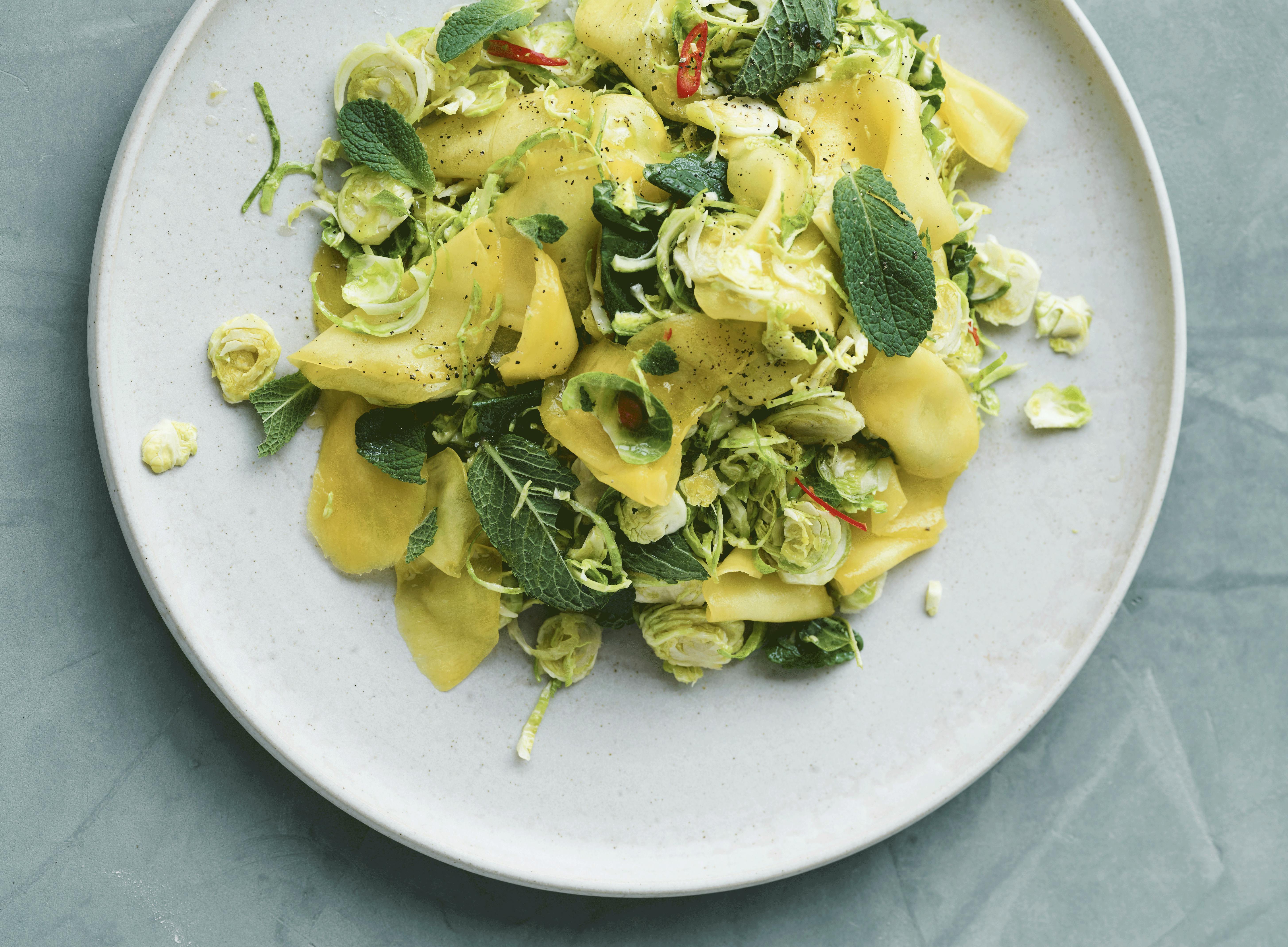 Nedenunder får du en opskrift på en lækker rosenkålssalat med mango, lime, mynte og chili, du kan glæde dine smagsløg med.