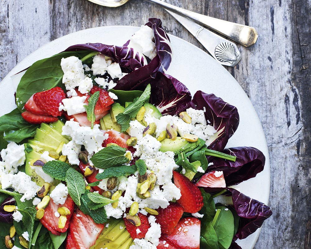 Fyld tallerkenen op med ren sommer! Denne sprøde salat med jordbær og fetaost rummer både sødme, fedme og sprød friskhed. Server den alene eller som tilbehør til sommerens grill-måltider.