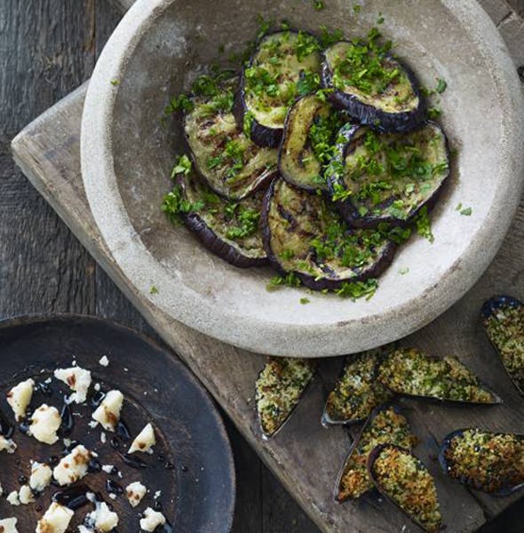 Denne nemme italienske ret stammer fra Puglia i Syditalien, hvor klimaet er perfekt til at dyrke auberginer med stærk sol og mange soltimer. Auberginer dyrkes her i flere varianter og bruges i alverdens forskellige retter. Denne er en klassiker, som gør sig særligt godt som antipasta eller frokost med groft brød og en sprød salat.