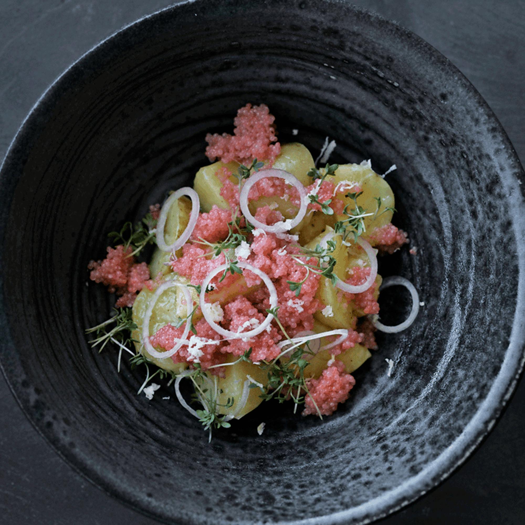 Prøv denne lækre forårsudgave af en kartoffelsalat med stenbiderrogn, peberrod, karse og skalotteløg. Få opskriften her (link fjernet)