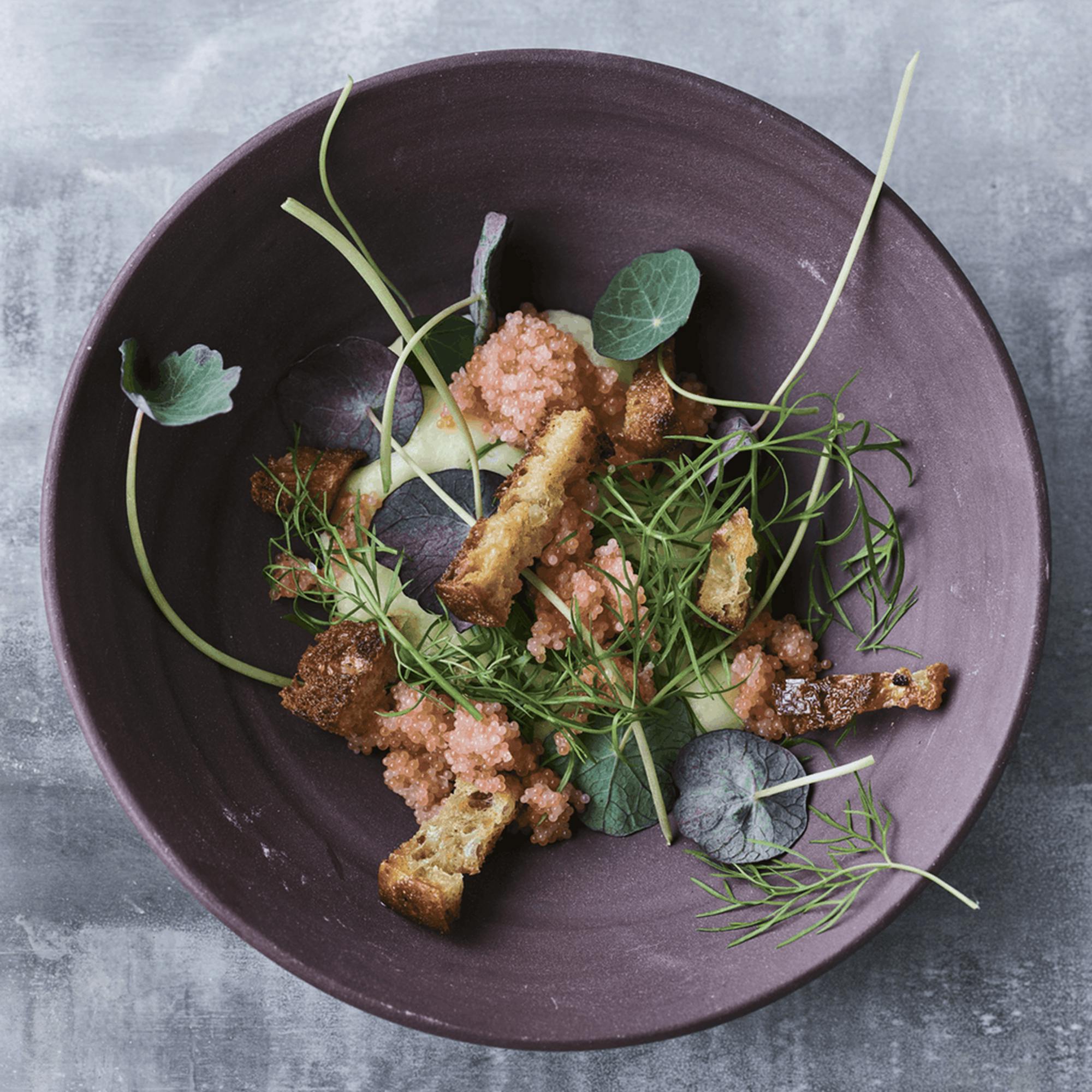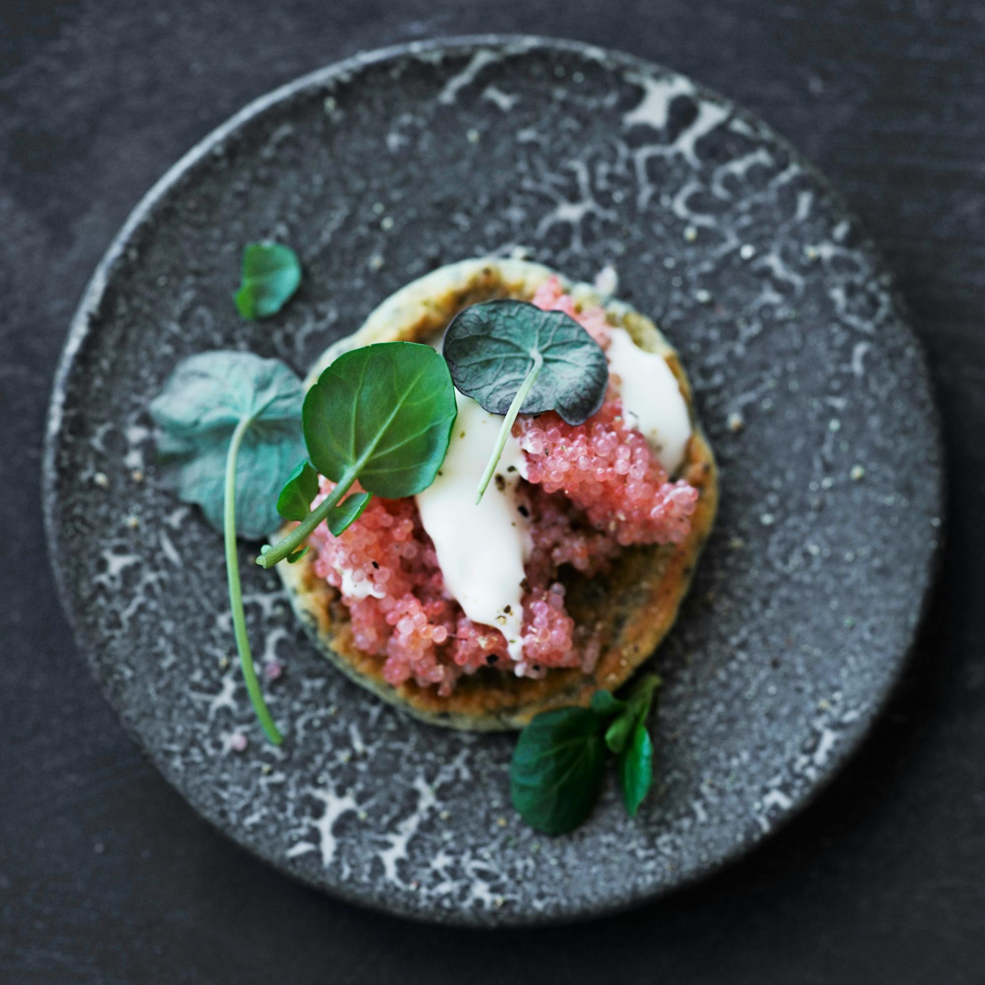 Prøv denne delikate opskrift på stenbiderrogn med brændenælde-blinis, creme fraiche og urter. Server den som velkomstsnack eller forret til middagsselskabet. Få opskriften her (link fjernet)