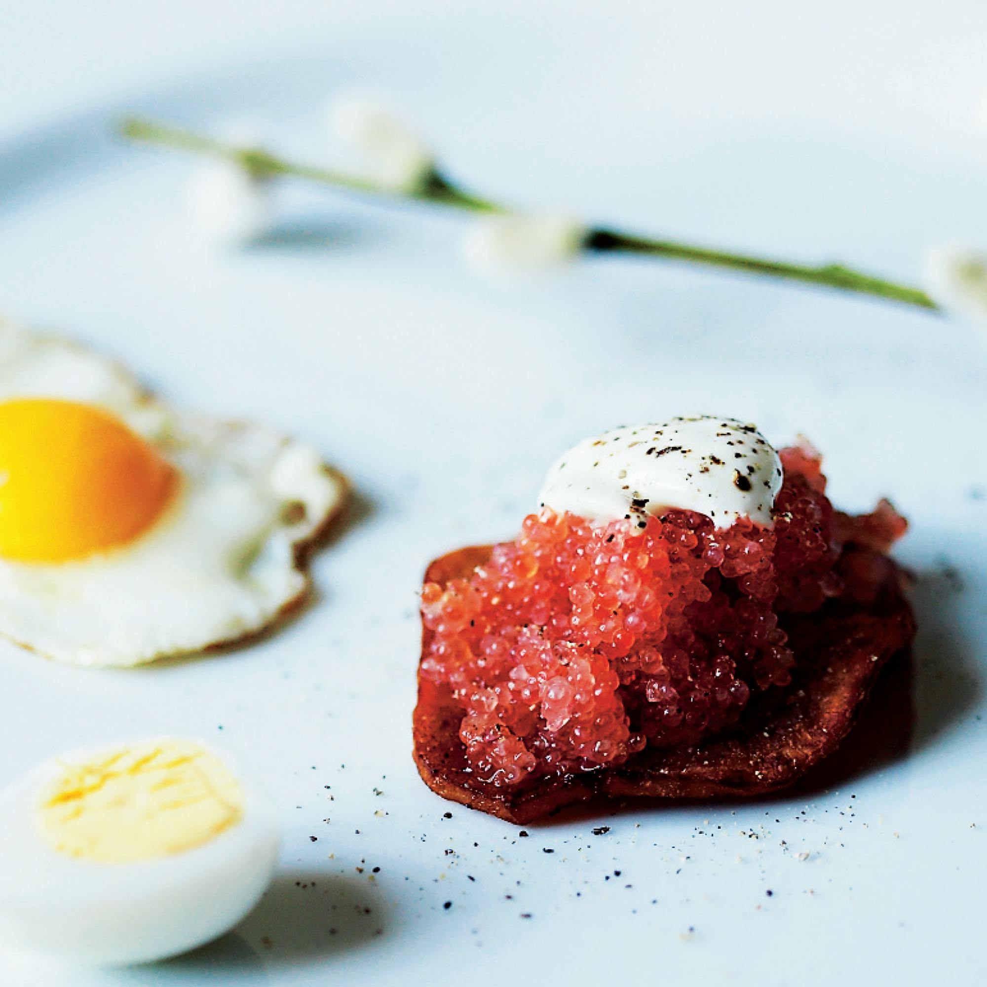 I denne opskrift får den delikate stenbiderrogn følgeskab af sprøde kartoffelpandekager, peberrodscreme og finthakket løg. Få den lækre opskrift her (link fjernet)
