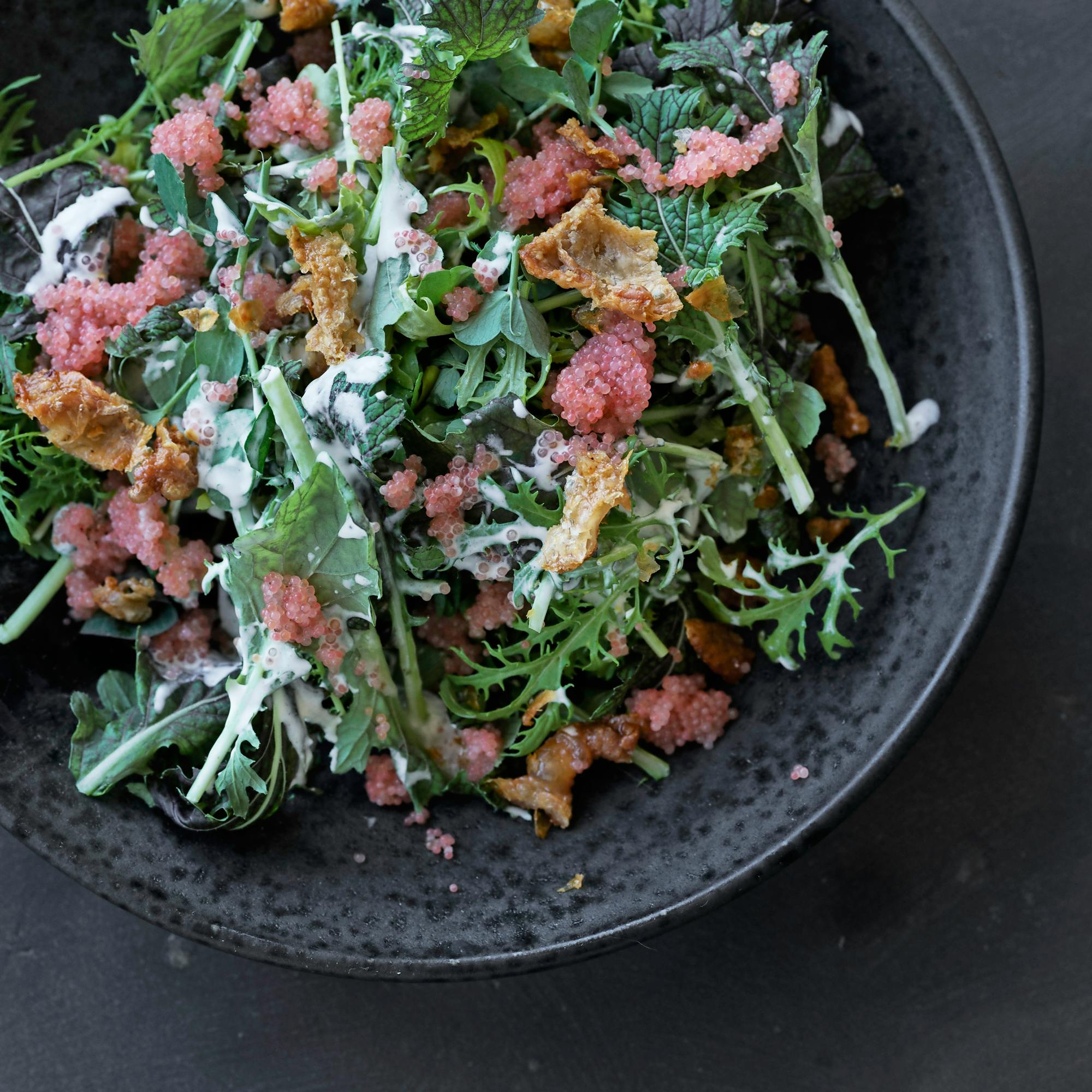 Denne lækre salat med stenbiderrogn og kyllingeskind vendt med en klassisk mormordressing er fantastisk som tilbehør til middagen. Få opskriften her (link fjernet)