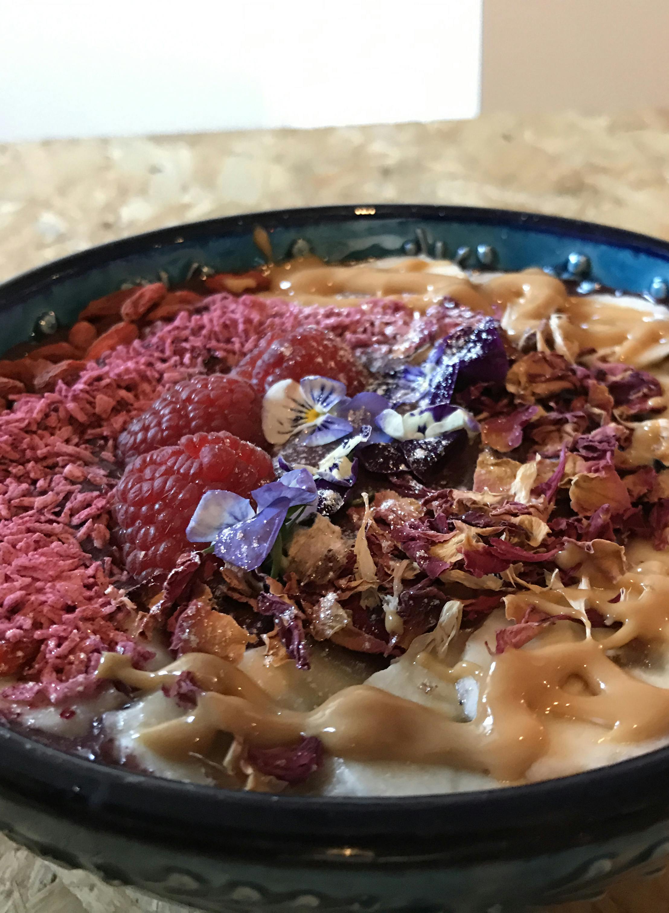 TIP: Læg også frugt i bunden af din acai bowl, og hæld smoothien over. Brug fx tynde skiver bananer og mejool dadler - det giver en lækker sødme til den syrlige smoothie.