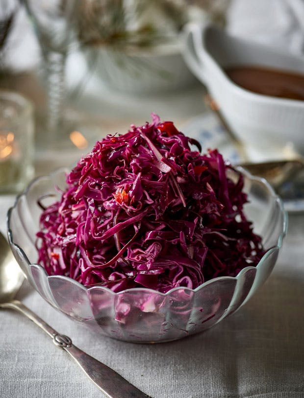 Rødkål er uundværlig til flæskestegen juleaften, og hvorfor ikke imponere gæsterne med at lave den selv? Denne opskrift kan både laves et par dage i forvejen eller fryses ned flere uger i forvejen og tøs op juleaftensdag. Laver du den frisk, skal du helst lave den dagen før, så smager den allerbedst.