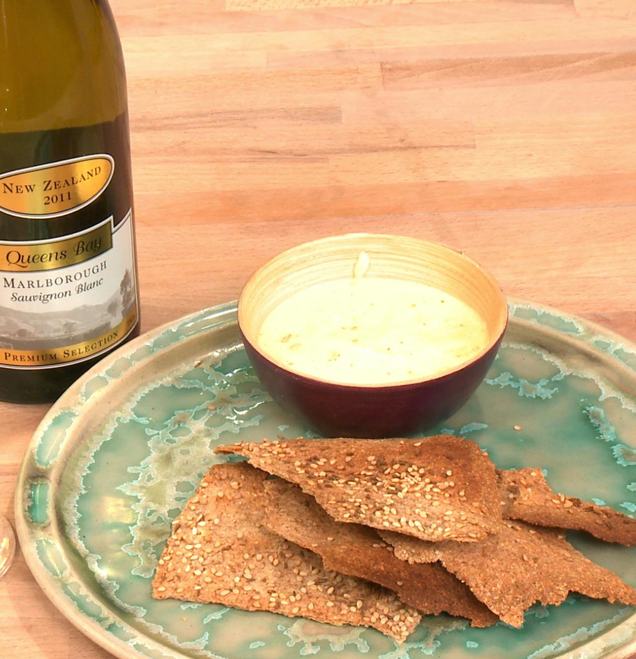 Knækbrødene tages ud og stilles til afkøling. Herefter knækkes det i grove stykker og serveres med skyr dip til.