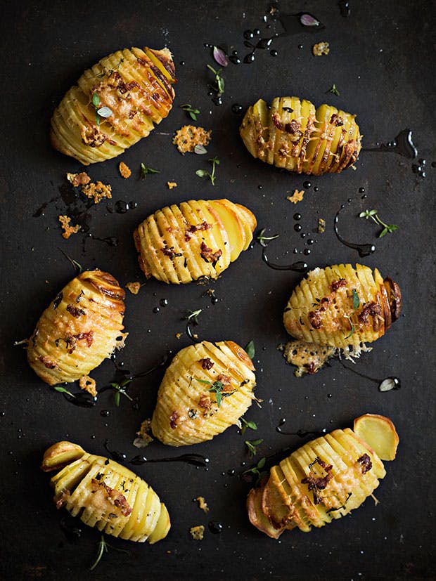 Et godt stykke kød, noget salat og en hasselbagt kartoffel – simpelt, men klassisk og altid et hit. Uanset om du kalder kartoflerne hasselbagte eller hasselback er der vist ingen tvivl om, at de smager godt. Bedst af alt er de utroligt lette at lave, og så egner de sig godt til festlige middage – og nytår er jo helt oplagt.