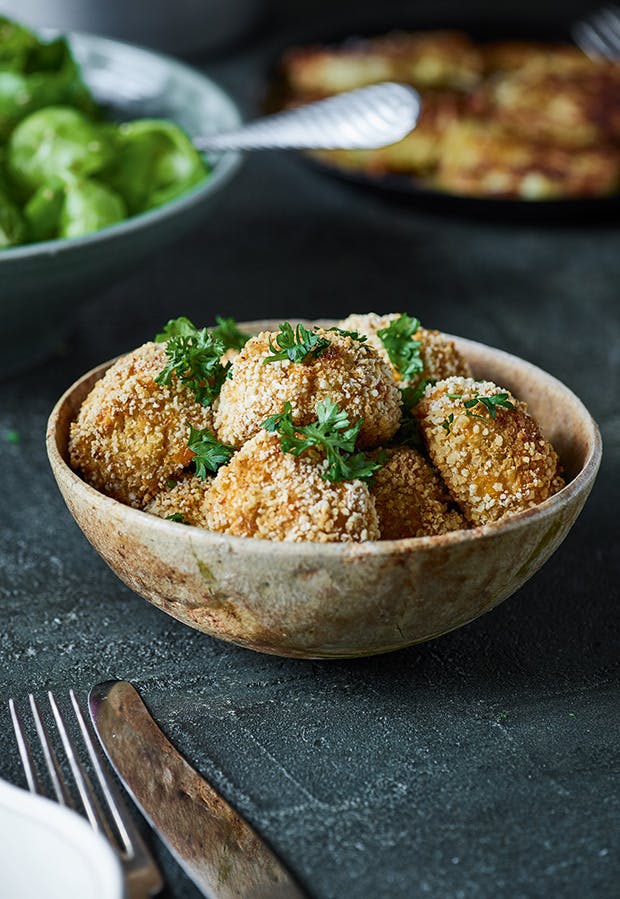 Tip: Vi har valgt at bruge blomkål, da den har den mest neutrale kålsmag. Men du kan også lave retten af broccoli, rosenkål eller rodfrugter. Kikærter kan også bruges og vil få retten til at smage hen ad falafler.
