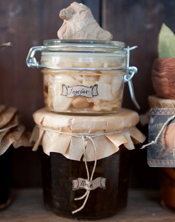 Skræl ingefæren, og skær den ud i supertynde skiver. Kog vandet, og hæld det over ingefæren. Lad det trække, til det er kølet lidt af, og hæld så eddike og sukker på. Bland det grundigt, og lad det trække i 2-3 dage. Lagen skal dække ingefærskiverne. Serveres til sushi m.m.