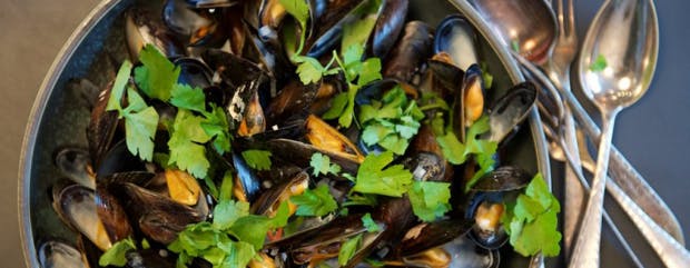 Dampede muslinger er nemme at lave og smager fantastisk. Få opskriften på Timm Vladimirs version af retten her.