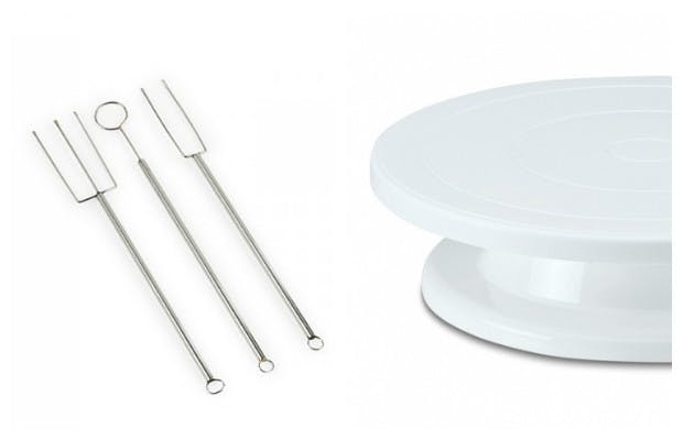 En rotérbar kageopsats giver dig fuld kontrol, når din kage skal pyntes. Dermed kan du let dreje kagen, imens dekorationen skrider frem, og undgå en dårlig arbejdsposition. Køb den her! (link fjernet)