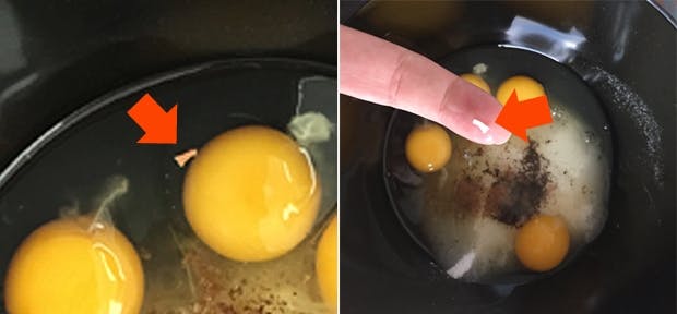 Men nu har vi tricket, der hjælper dig med at fange æggeskallen, så du aldrig mere skal være bange for, at dine gæster får en knasende og ubehagelig kage-oplevelse, når de sætter tænderne i dit bagværk.