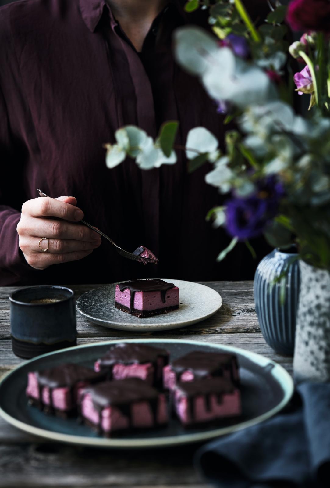 Hindbærkage med daddel-nøddebund