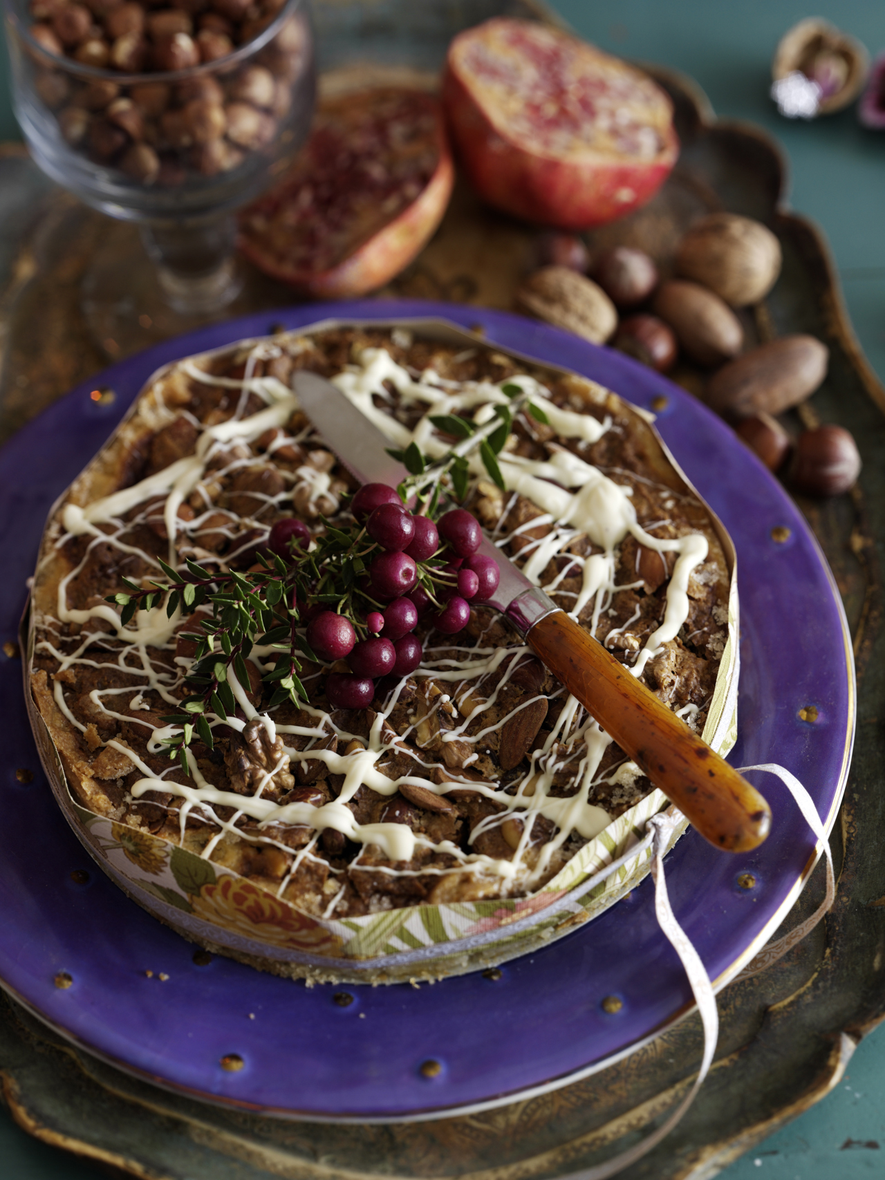 Jordbærislagkage med nøddebunde og hvid chokolade