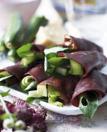 Bresaola med squash, oliventapenade og parmesan